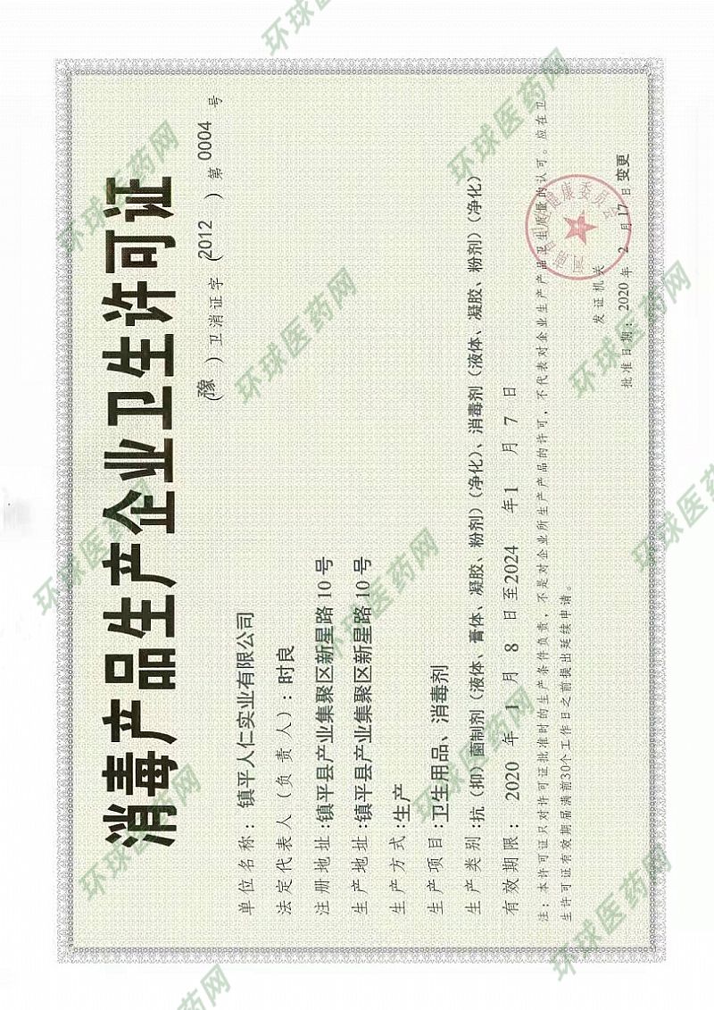 批準文號: 豫衛(wèi)消證字2012第0004號