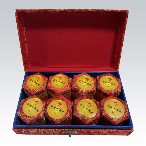 | 主要成分 | 體外培育牛黃、水牛角濃縮粉、人工麝香、珍珠、朱砂、雄黃、黃連、黃芩、梔子、郁金、冰片。 |