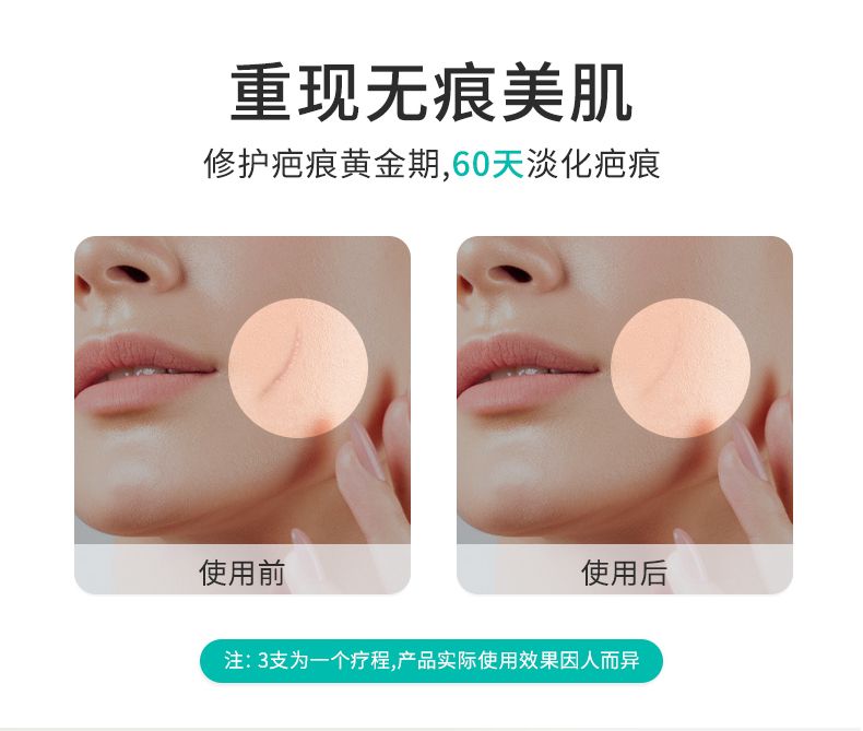 | 使用方法 | 洗凈疤痕部位,涂抹于疤痕表面,輕輕揉搓即可。每日2-3次。 |