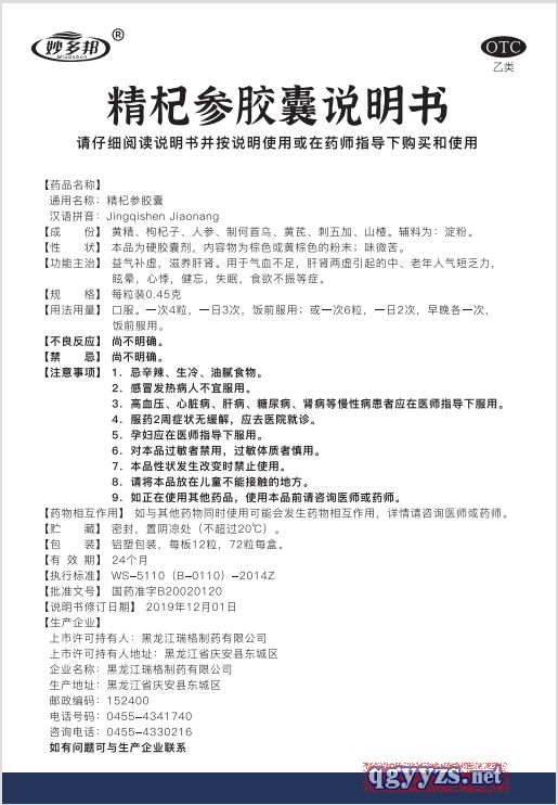 | 通用名稱 | 精杞參膠囊 |
