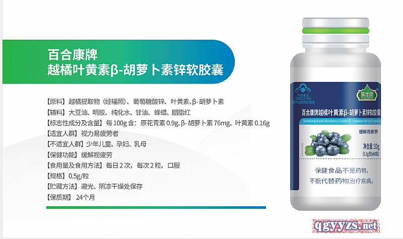 產(chǎn)品名稱: 越橘葉黃素β-胡蘿卜素鋅軟膠囊