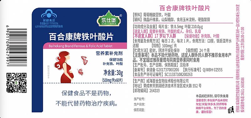 | 補(bǔ)充說明 | 【適宜人群】:需要補(bǔ)充鐵、葉酸的成人、孕婦、乳母 |