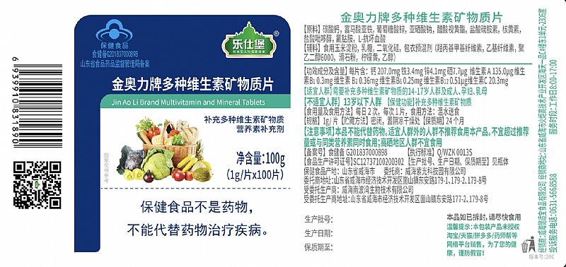 | 英文名稱 | Jin Ao Li Brand Multivitamin and Mineral Tablets |
