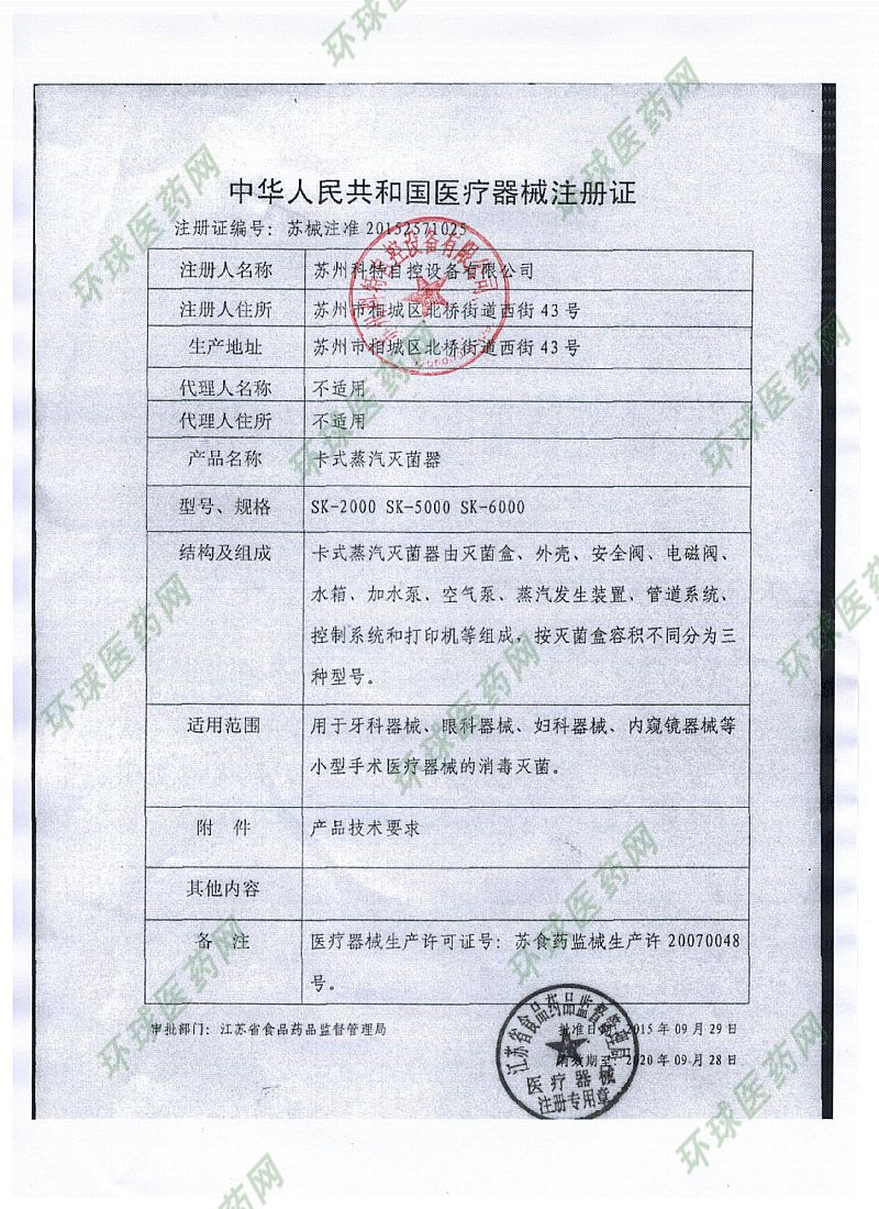 批準文號: 蘇械注準20152571025 【驗證真?zhèn)?/a>】