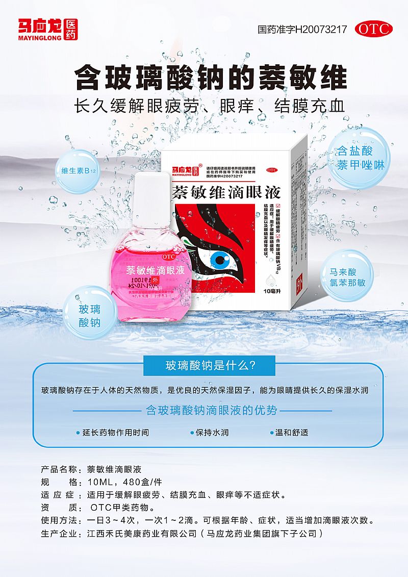 | 產(chǎn)品賣點 | 1、能在眼球表面形成一層網(wǎng)狀透氣膜,在不影響氧氣代謝的情況下,將治療藥物覆蓋于眼球表面,即將增大了治療面積,又能減緩釋放藥物,提高療效。 2、含玻璃酸鈉。不含薄荷、冰片,溫和。區(qū)別于那些含薄荷、冰片類的眼藥水,長期使用會造成干眼癥。 3、快速緩解紅血絲、緩解疲勞、抗菌消炎。眼疲勞的優(yōu)選藥品 |