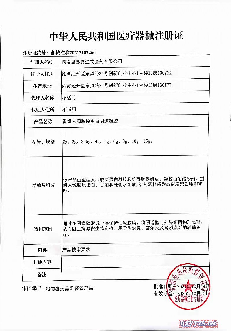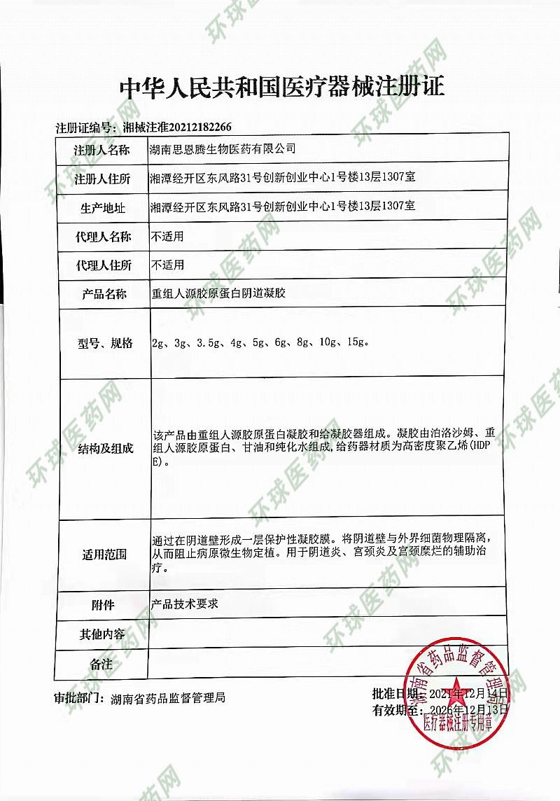 | 產(chǎn)品名稱 | 重組人源膠原蛋白陰道凝膠 |