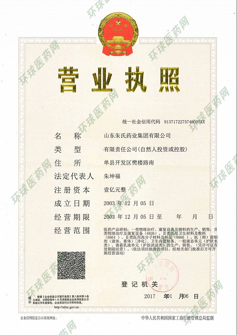 生產(chǎn)企業(yè): 山東朱氏藥業(yè)集團(tuán)有限公司