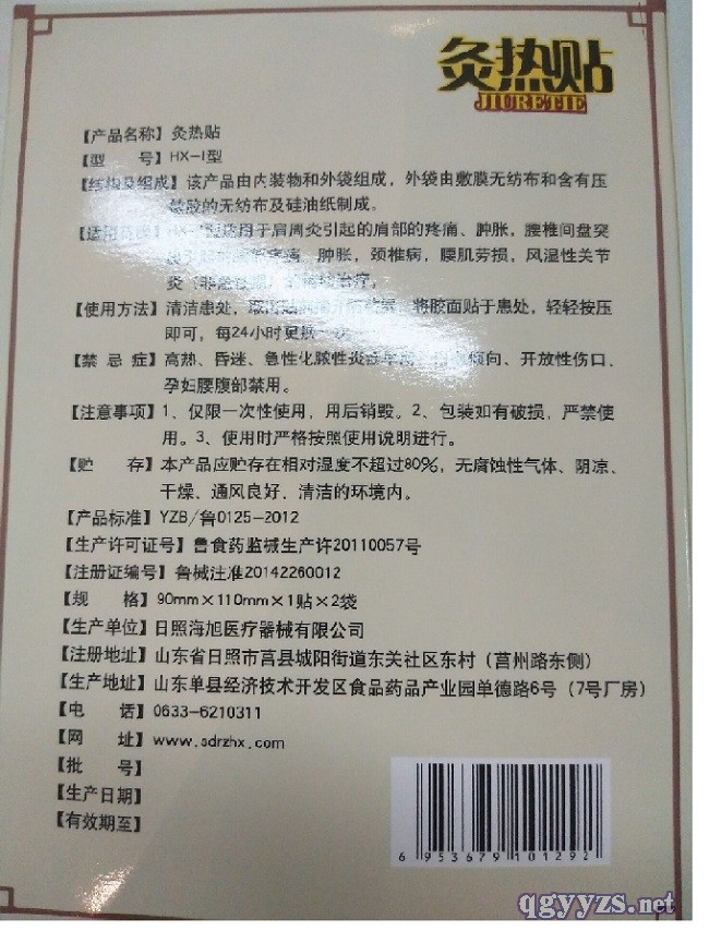 | 產(chǎn)品用途 | 灸熱貼適用于腰椎間盤突出引起的腰部的疼痛、腫脹;肩周炎引起的肩部的疼痛、腫脹;頸型頸椎病、腰肌勞損、風(fēng)濕性關(guān)節(jié)炎(非急性期)的輔助治療。 |