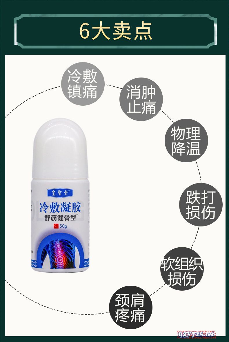 | 產(chǎn)品賣(mài)點(diǎn) | 【筋骨冷敷凝膠】 成分:天然野生大艾葉草、紅花、川穹、九里香,當(dāng)歸,赤芍藥,紫金皮,乳香,沒(méi)藥,楓香等名貴中草藥提取物,中藥制劑。適用于頸椎、肩部、腰椎、膝蓋等疼痛部位。單瓶50克,單個(gè)部位用量約1克,一瓶可用40-60次左右,滾珠式設(shè)計(jì),涂抹的同時(shí)又有按摩作用,使艾灸液更好更快吸收。 |
