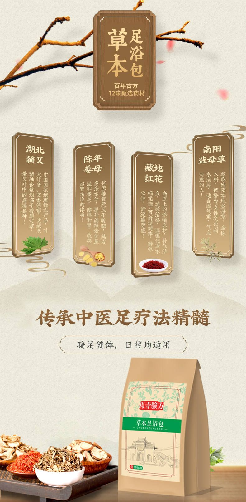 | 用法用量 | 一天一包,溫水微熱,睡前泡腳。 |