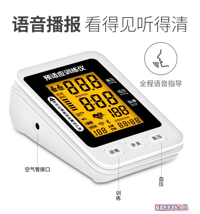 | 產(chǎn)品賣(mài)點(diǎn) | 預(yù)適應(yīng)訓(xùn)練儀好處:一次預(yù)適應(yīng)訓(xùn)練相當(dāng)于跑5000米血液循環(huán)運(yùn)動(dòng)量; ①改善睡眠;②預(yù)防心梗腦梗;③增加血管彈性;④使血管壁光滑;⑤促進(jìn)血液循環(huán);⑥調(diào)整血壓 產(chǎn)品優(yōu)勢(shì):①一鍵操作智能測(cè)壓;②醫(yī)用標(biāo)準(zhǔn)語(yǔ)音播報(bào);③超薄設(shè)計(jì)專利產(chǎn)品;④內(nèi)置鋰電環(huán)保節(jié)能;⑤高清屏顯;⑥兩用,可測(cè)量可訓(xùn)練保健康! |