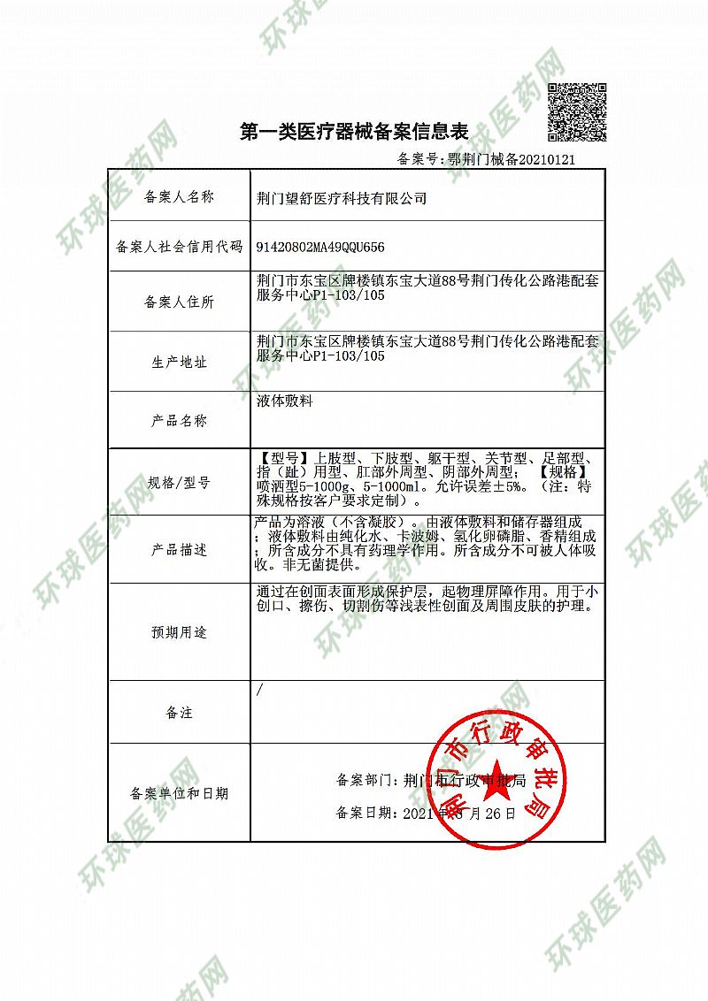 生產(chǎn)企業(yè): 荊門望舒醫(yī)療科技有限公司