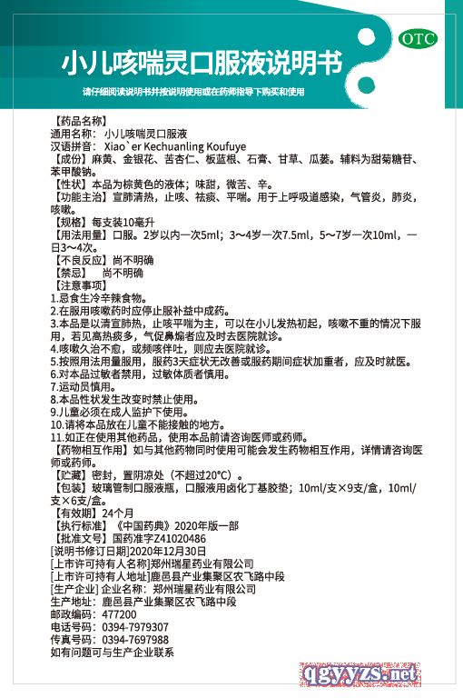 | 通用名稱(chēng) | 小兒咳喘靈口服液 |