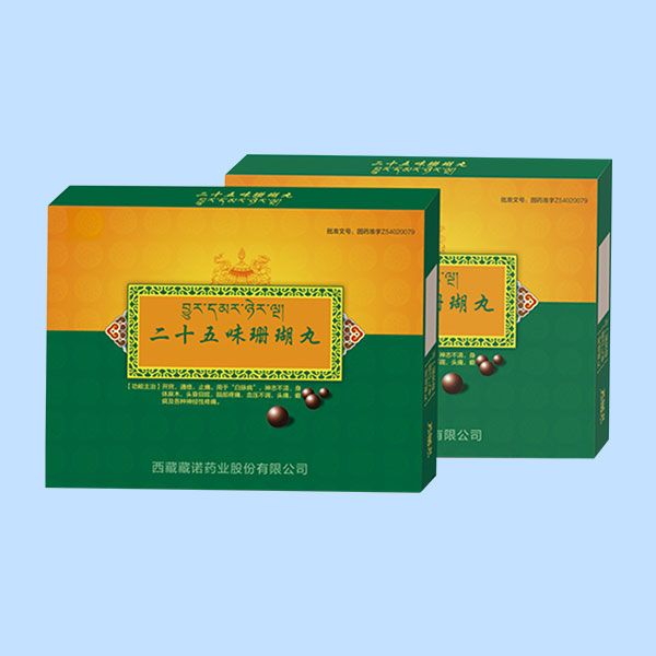 | 主要成分 | 珊瑚、珍珠、青金石、珍珠母、訶子、木香、紅花、丁香、沉香、朱砂、龍骨、爐甘石、腦石、磁石、禹糧土、芝麻、葫蘆、紫菀花、獐牙菜、藏菖蒲、榜那、打箭菊、甘草、西紅花、人工麝香 |
