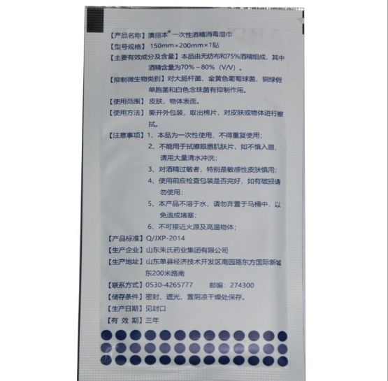 | 主要成分 | 本品由無(wú)紡布和75%酒精組成,其中酒精含量為70%~80%(V/V)。 |