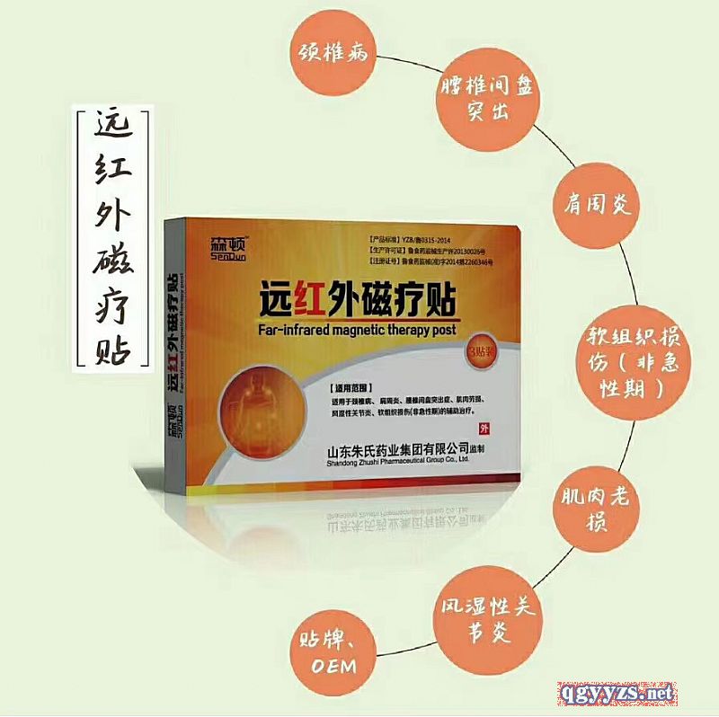 | 作用機理 | 采用納米萃取技術,滲透力強,可直達病灶,迅速止疼,除血瘀、通阻,集巴布貼和黑膏藥的優(yōu)勢于一身,柔軟舒適,不拔汗毛,清潔衛(wèi)生,無殘留。 采用了五行八卦劑型,內含永磁片,運用中醫(yī)五行生克理論快速祛除病痛,劑型獨特 |