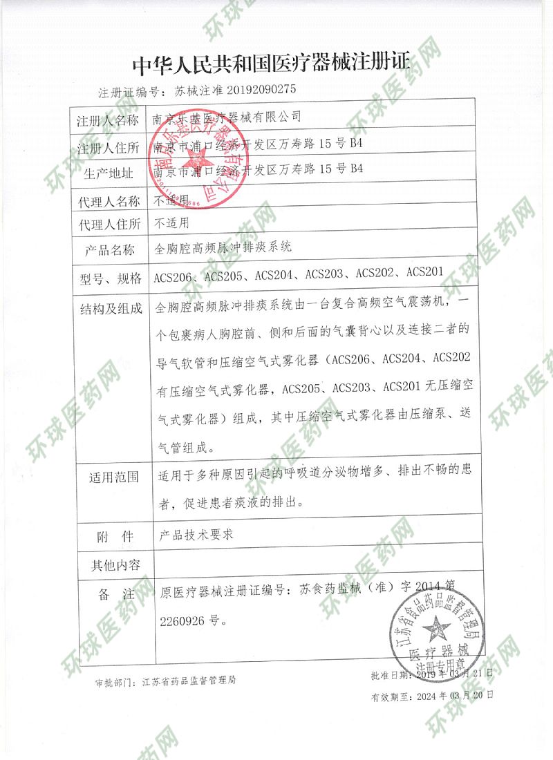 | 注冊商標(biāo) | 全胸腔高頻脈沖排痰系統(tǒng) |