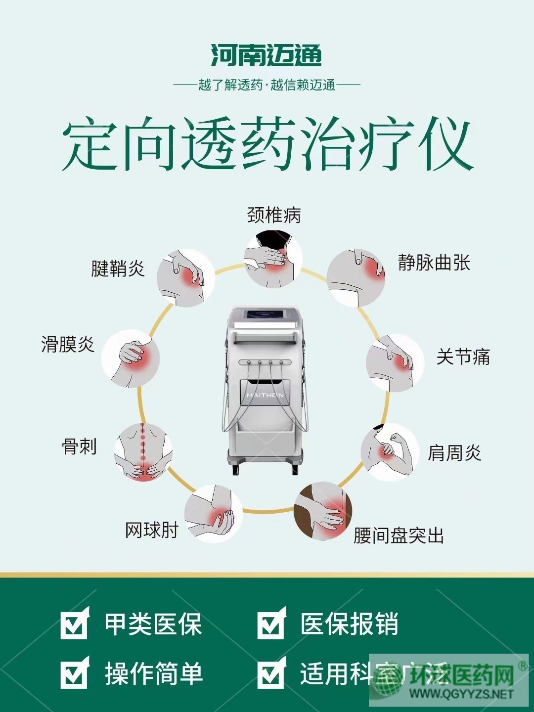 | 補充說明 | 產(chǎn)品特點: 1、提高生物利用率,減少總用藥量,藥物經(jīng)皮膚直接進入體內(nèi),從而避免了藥物在胃腸道被消化酶破壞、分解和經(jīng)肝臟時的首過效應(yīng)以及在體內(nèi)運轉(zhuǎn)過程中的代謝。并避免了個體差異。進入體內(nèi)的藥物有效成分被直接利用,其利用度可達60以上,使藥物總用量減少50以上。 2、由于可直接在病變組織處迅速形成藥物的聚集和浸潤,并達到藥物的有效組織濃度,直接、迅速的發(fā)揮其藥物的治療作用。 3、藥效穩(wěn)定、持久,由于皮膚和組織的藥物代謝比較緩慢,使病變處的有效藥物濃度可維持較長的一段時間。一般情況下可比口服藥物作用時間延長2-3倍。 4、無血藥濃度峰谷現(xiàn)象:藥物進入人體內(nèi)后入血量緩慢而穩(wěn)定,不會產(chǎn)生類似于口服或靜脈滴注藥物時所產(chǎn)生的血藥濃度峰谷現(xiàn)象。也就避免了因血藥濃度峰值時產(chǎn)生的毒副作用。 5、提高療效,藥物在病變組織處維持較長時間、較高的有效濃度,提高藥物對靶組織的作用。同時由于促進了藥物由細(xì)胞外向細(xì)胞內(nèi)轉(zhuǎn)運,使需要在細(xì)胞內(nèi)發(fā)揮作用的藥物發(fā)揮*大藥效。 6、精選專家治療處方+動態(tài)多元交互系統(tǒng)+自動檢測預(yù)警系統(tǒng)+精準(zhǔn)控制的定向透藥系統(tǒng) 臨床適用:康復(fù)科、兒科、消化科、婦科、中醫(yī)科、骨科、呼吸科。 肩周炎、勁椎病、腰腿痛、骨關(guān)節(jié)風(fēng)濕、坐骨神經(jīng)痛、軟組織挫傷。 小兒腹瀉、小兒肺炎、小兒積食、支氣管炎、肺炎引起的咳嗽。 消化不良、胃酸、胃脹、胃痛、噯氣、早飽、厭食。 |