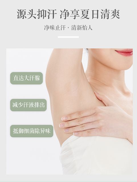抑汗去臭,拉進(jìn)彼此距離。源頭抑汗,凈享夏日清爽!直達(dá)大汗腺,減少汗液排出!
