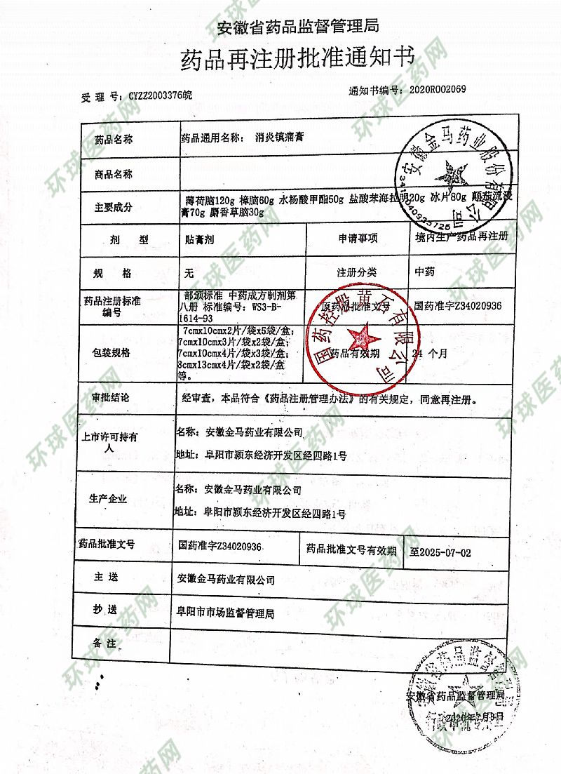 | 通用名稱 | 消炎鎮(zhèn)痛膏 |