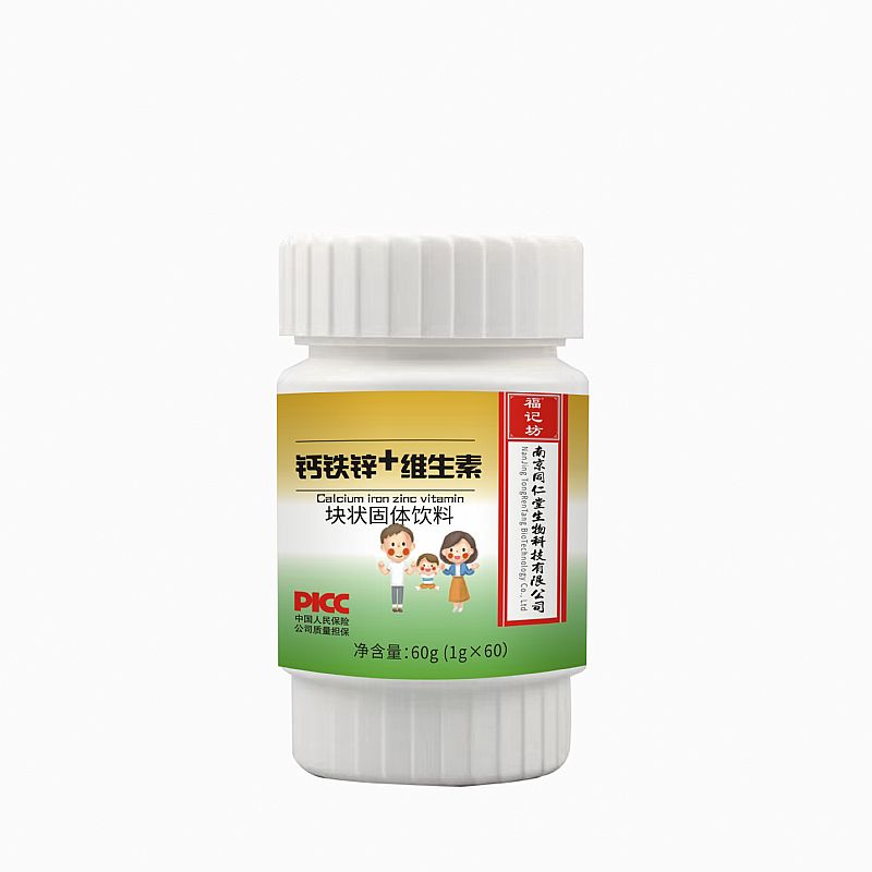 | 產(chǎn)品名稱 | 南京同仁堂鈣鐵鋅+維生素塊狀固體飲料 |