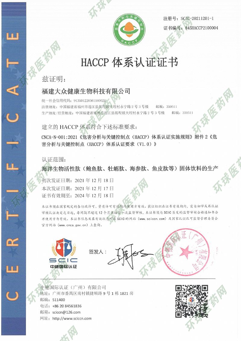生產(chǎn)企業(yè): 福建大眾健康生物科技有限公司