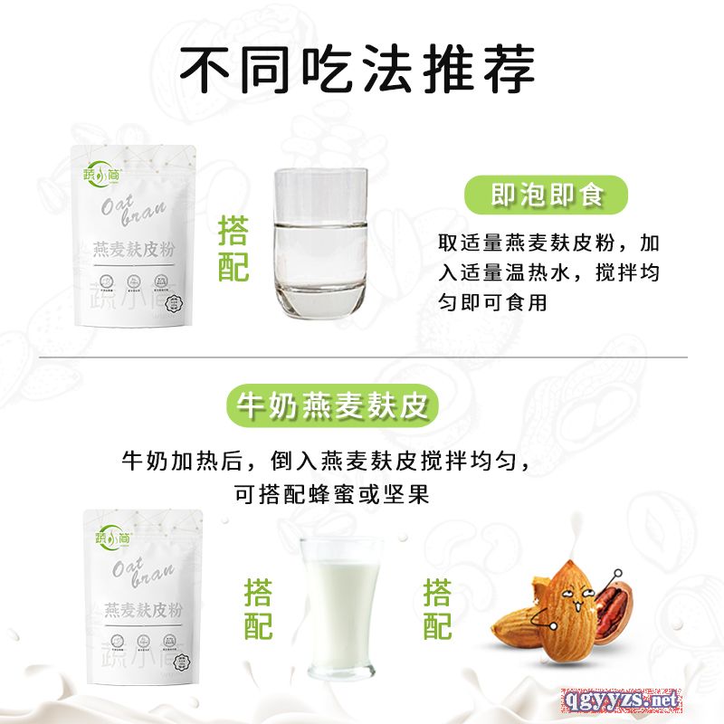 | 食用方法 | 食用方法:取適量燕麥麩皮粉,加入適量溫?zé)崴,攪拌均勻即可食用。濃稠度根?jù)個(gè)人喜好調(diào)制。(建議開封后60天內(nèi)食用完畢)。 過敏原:本品含有麩質(zhì),過敏者慎食 |