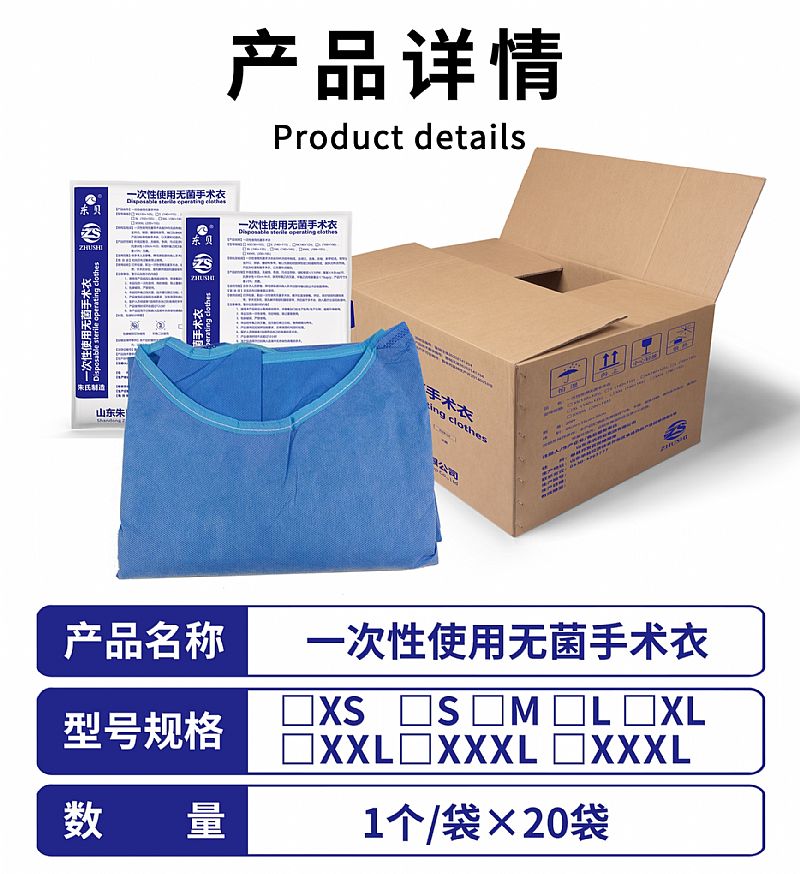 | 補充說明 | [使用說明]打開包裝,取出一-次性使用無菌手術(shù)衣,展開后直接穿戴。然后,系好頸部和腰部系帶;手術(shù)完畢后,首先解開頸部和腰部系帶,然后脫下手術(shù)衣,放入醫(yī)療垃圾回收袋中, |