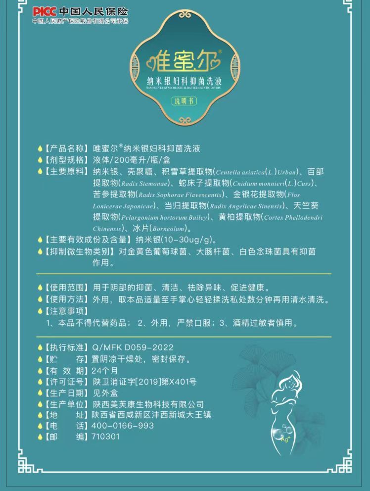 產(chǎn)品名稱(chēng): 唯蜜爾®納米銀婦科洗液