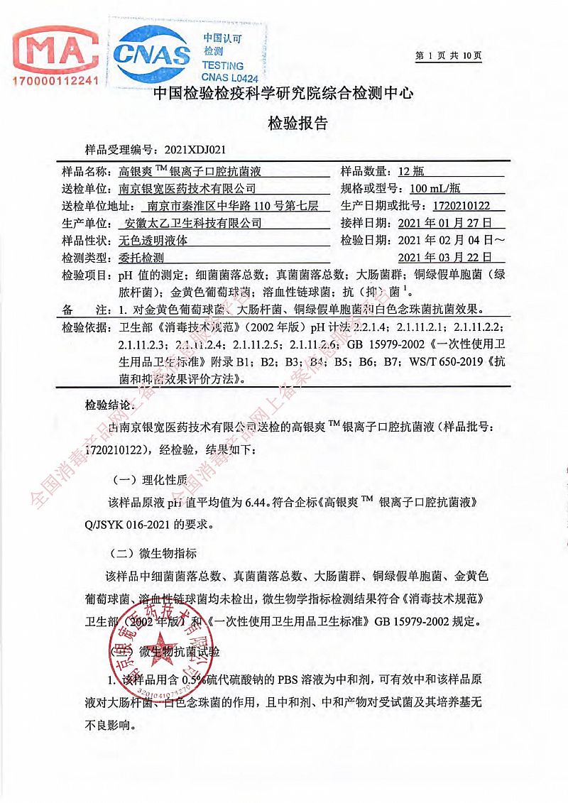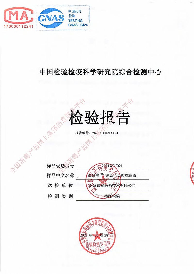 產(chǎn)品名稱: 高銀爽™;銀離子口腔抗菌液