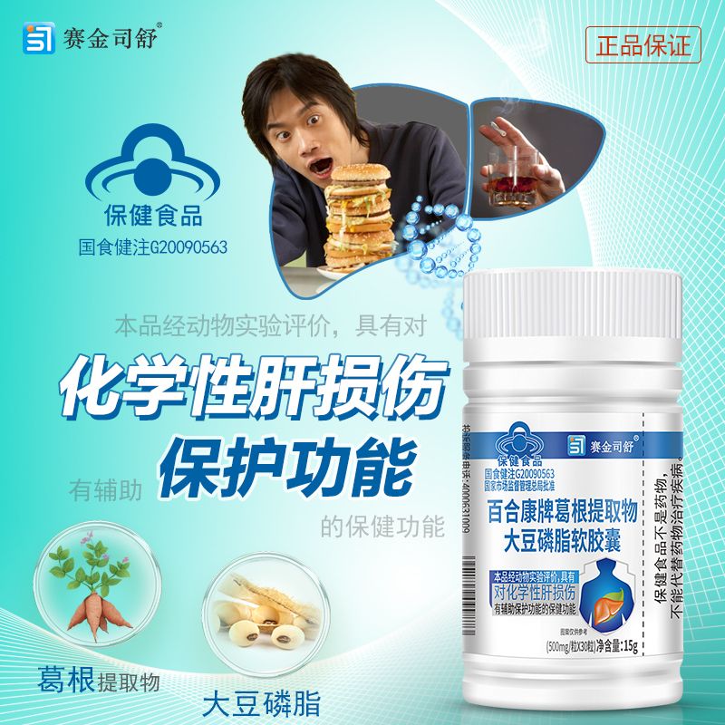 | 補(bǔ)充說(shuō)明 | 商標(biāo)名稱:賽金斯舒 產(chǎn)品性能:對(duì)化學(xué)性肝損傷有輔助保護(hù)功能 用法用量:"每日2次,每次2粒, 口服" 成 份:"每100g含: 葛根素3.6g" 產(chǎn)品說(shuō)明:百合康牌葛根提取物大豆磷脂軟膠囊 |