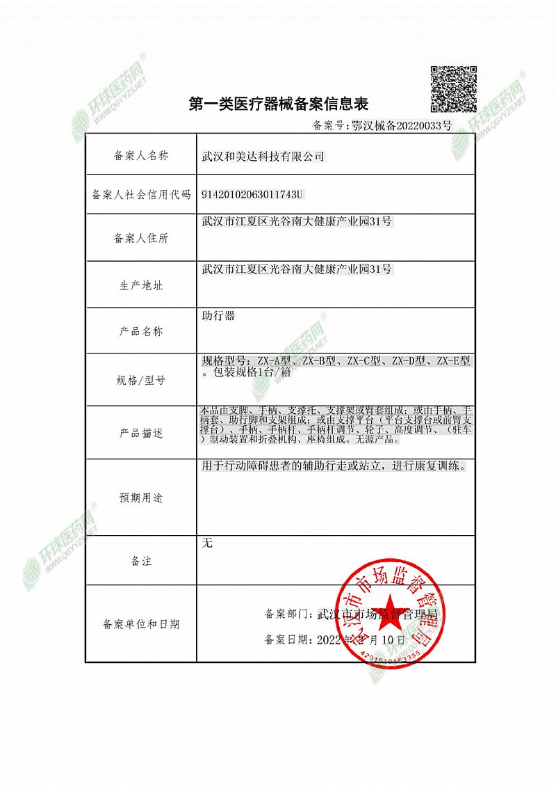 批準(zhǔn)文號(hào): 鄂漢械備20220033號(hào) 【驗(yàn)證真?zhèn)?/a>】