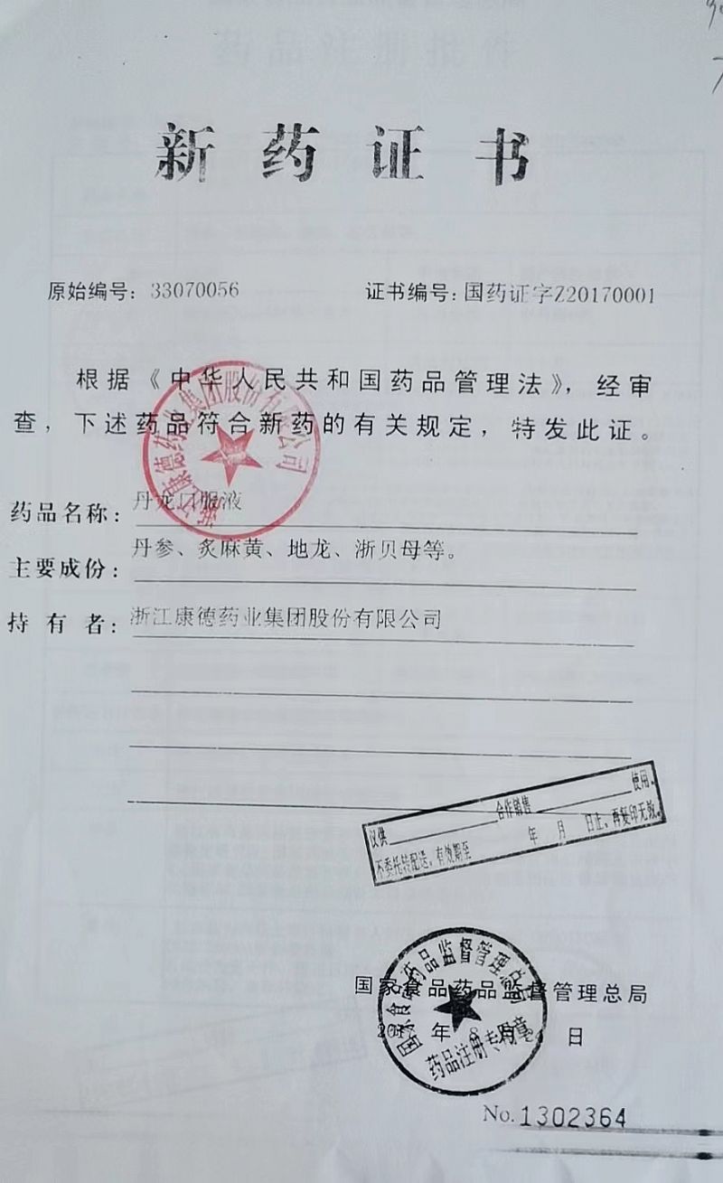 通用名稱: 丹龍口服液