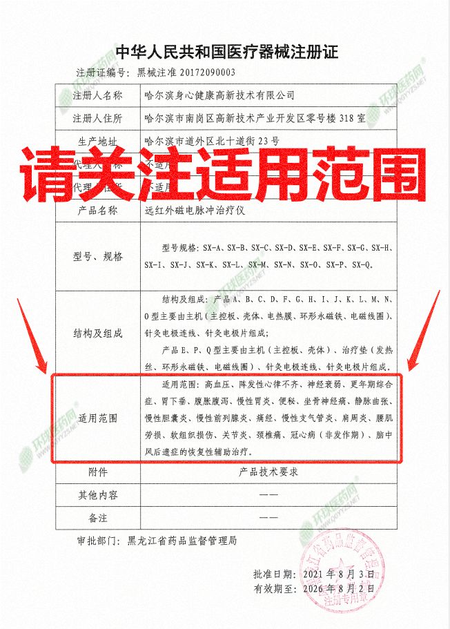 | 產(chǎn)品賣點 | 國家藥監(jiān)局批準:二類醫(yī)療器械,輔助治療人體七大系統(tǒng)21種疾病,批文藥監(jiān)局官網(wǎng)可查。 控銷;不掛網(wǎng); |