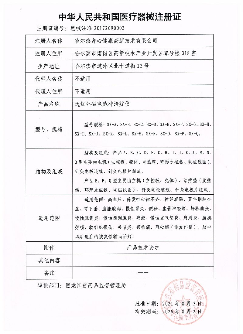 生產(chǎn)企業(yè): 哈爾濱身心健康高新技術有限公司