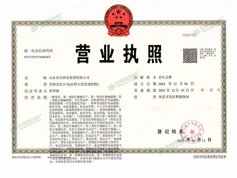 生產(chǎn)企業(yè): 山東朱氏藥業(yè)