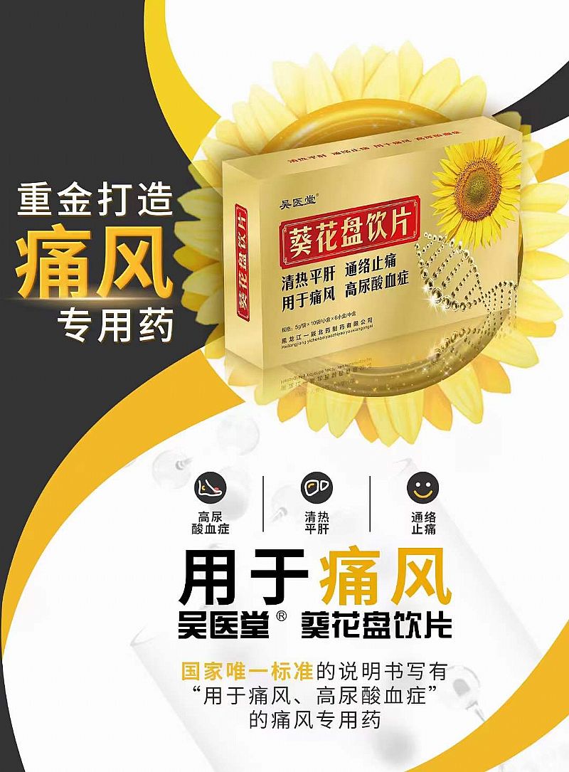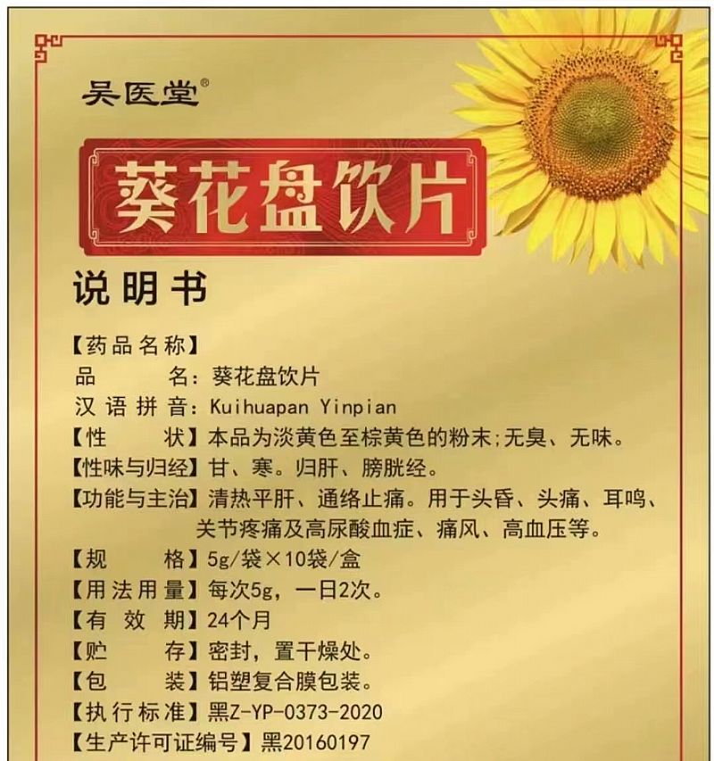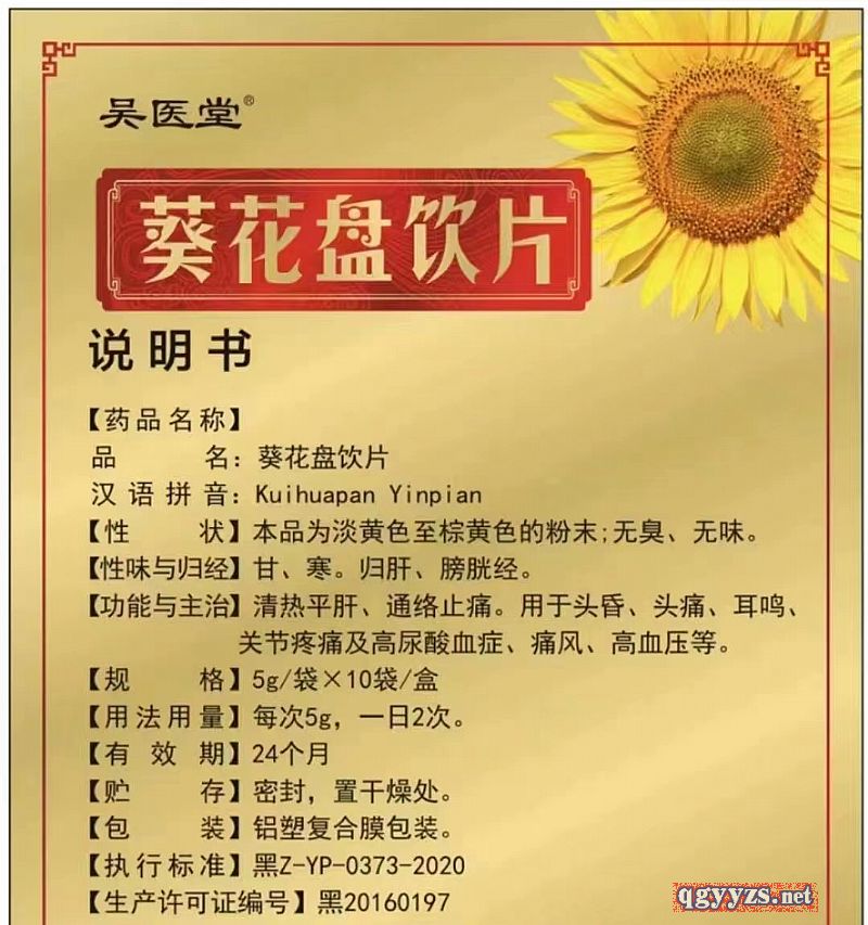 | 產(chǎn)品用途 | 葵花盤, 功能主治:清熱平肝、通絡(luò)止痛、用于痛風(fēng)高尿酸血癥 |