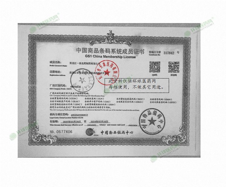 批準(zhǔn)文號(hào): 黑 Z - YP -0373-2020 【驗(yàn)證真?zhèn)?/a>】