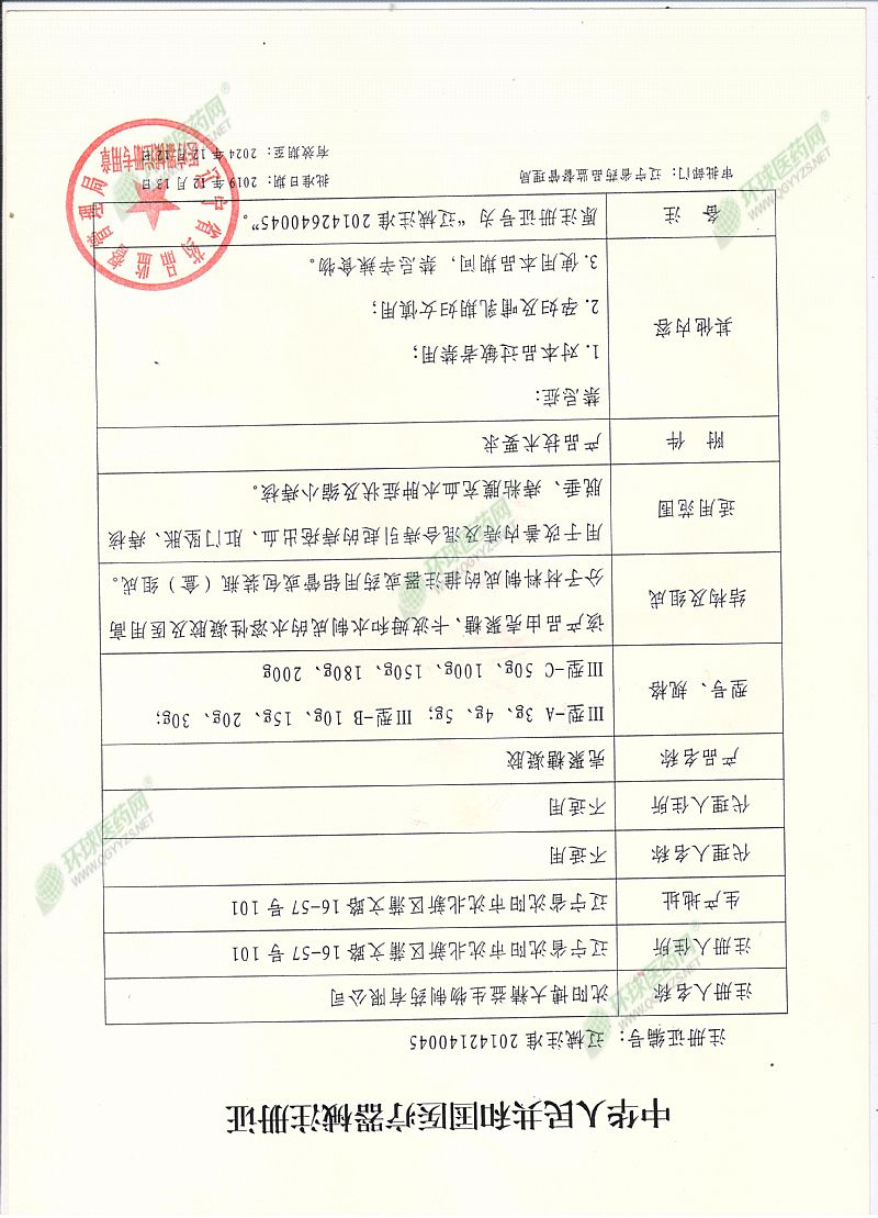 批準(zhǔn)文號(hào): 遼械注準(zhǔn)20142140045 【驗(yàn)證真?zhèn)?/a>】