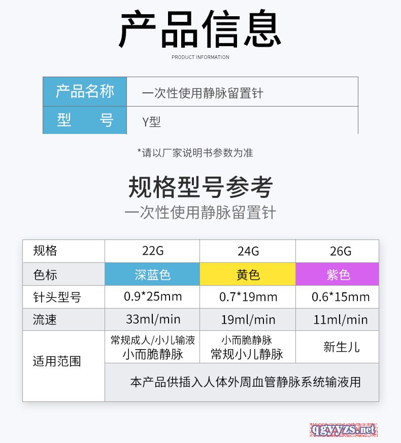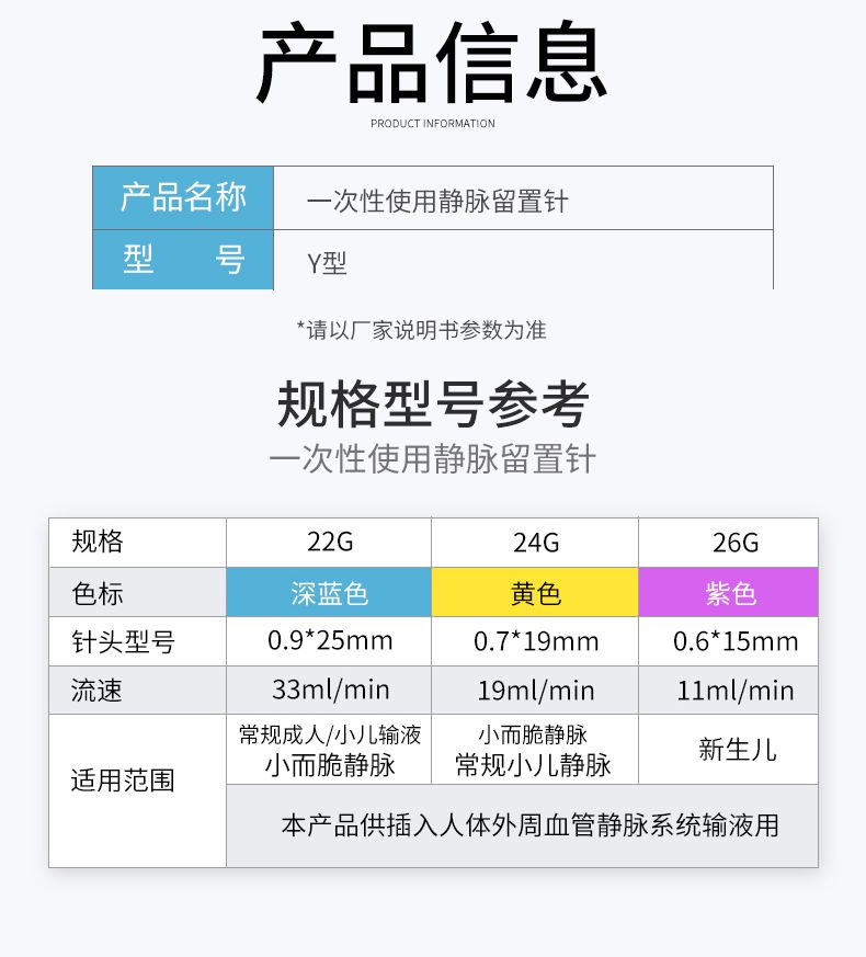 | 產(chǎn)品規(guī)格 | 新生兒/兒童/成人型號(hào)規(guī)格:Y26G0.6×16W、Y24G0.7×19W、Y22G0.8×25W |