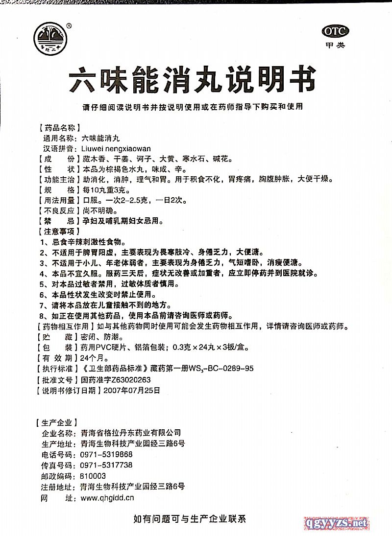 通用名稱: 六味能消丸