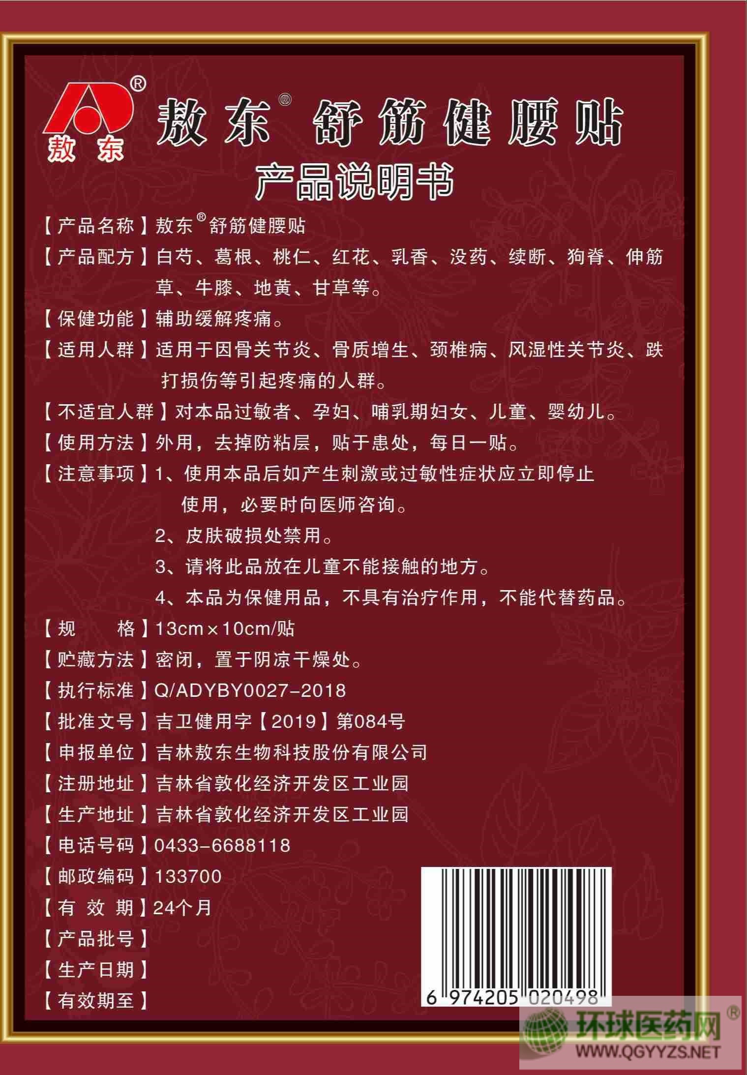 | 產(chǎn)品名稱 | 敖東舒筋健腰貼 |