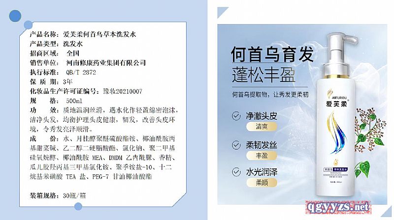| 產(chǎn)品名稱 | 愛芙柔何首烏草本洗發(fā)水產(chǎn)品 |