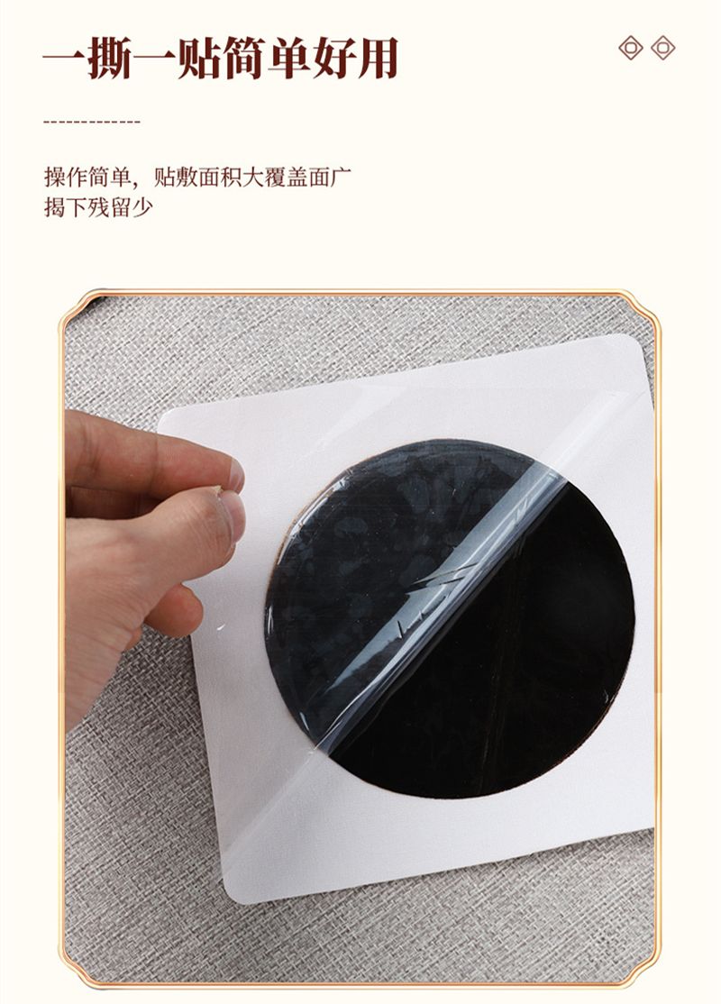 | 用法用量 | 外用。撕去保護膜,用開水壺或者吹風(fēng)機加熱至軟化;待膏體降至合適溫度貼敷于患者處避免燙傷,每次貼敷6-8小時;重復(fù)使用時重新加熱,對折幾次后貼敷即可,每貼可反復(fù)使用3-5天。 |