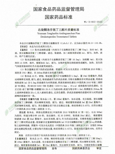 | 通用名稱 | 右旋酮洛芬氨丁三醇片 |