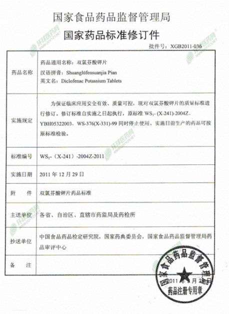| 主要成分 | 本品主要成份是雙氯芬酸鉀 |