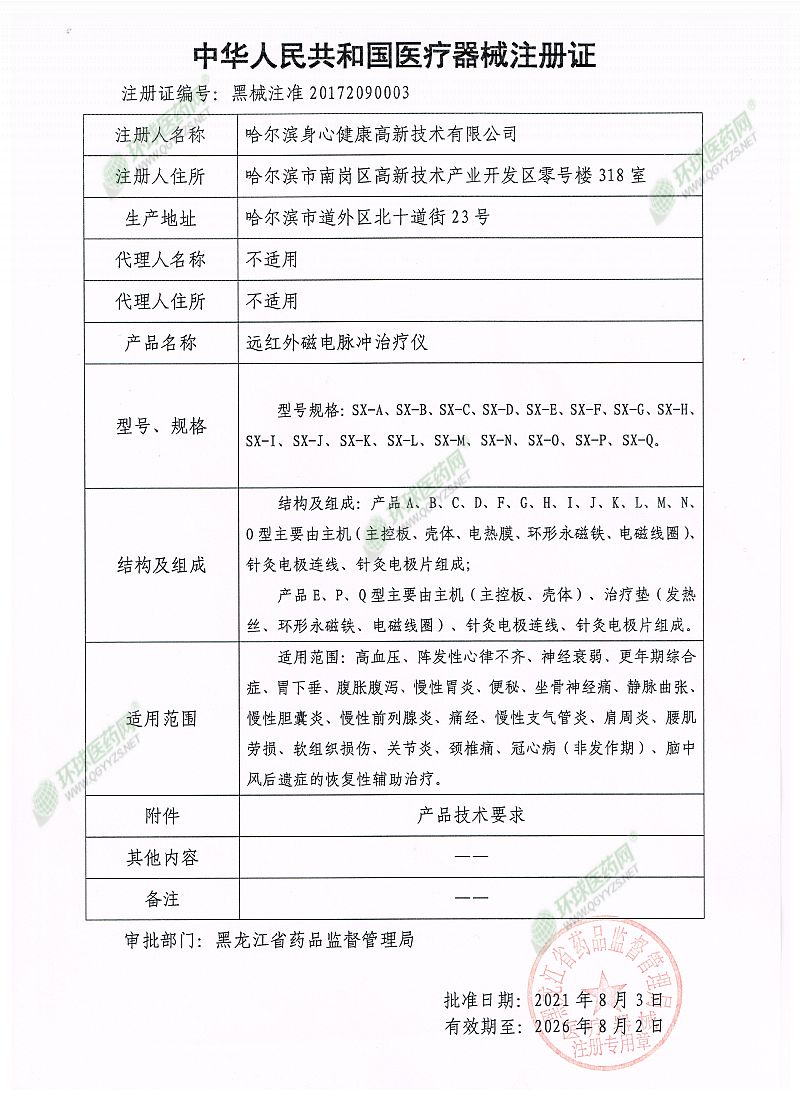 生產(chǎn)企業(yè): 哈爾濱身心健康高新技術有限公司