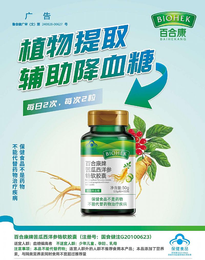 產(chǎn)品名稱: 百合康牌苦瓜西洋參鉻軟膠囊