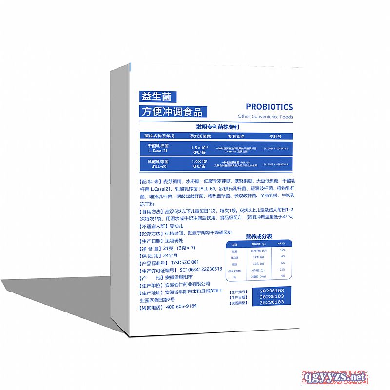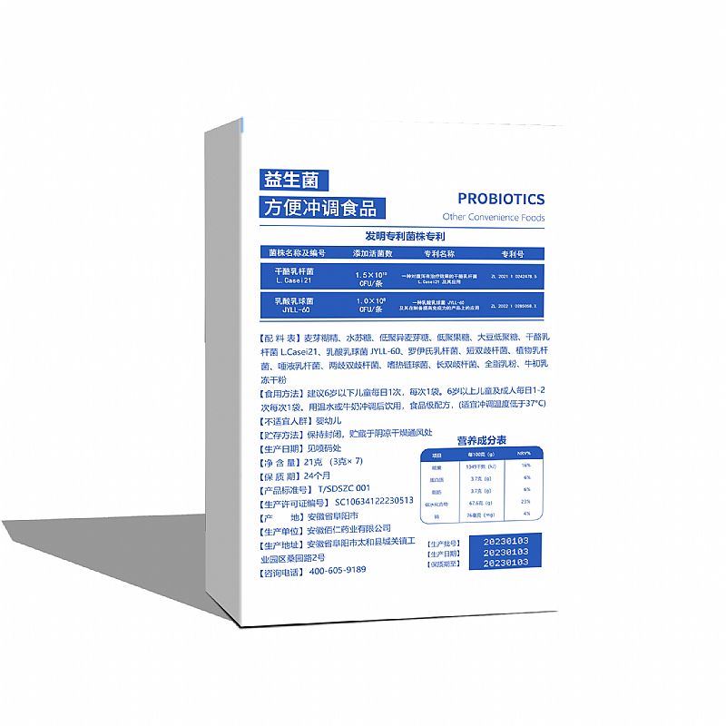 | 主要成分 | 麥芽糊精、水蘇糖、低聚異麥芽糖、低聚果糖、大豆低聚糖、干酪乳桿菌L.Casei21、乳酸乳球菌JYLL-60、羅伊氏乳桿菌、短雙歧桿菌、植物乳桿 菌、唾液乳桿菌、兩歧雙歧桿菌、嗜熱鏈球菌、長雙歧桿菌全脂乳粉、牛初乳凍 干粉 |
