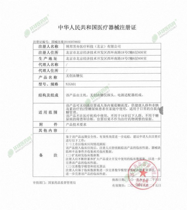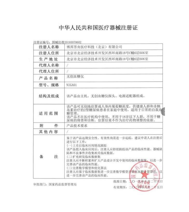 | 英文名稱 | Bofangzhou noninvasive blood glucose meter NIGA02 |
